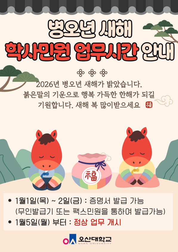 2026년 병오년 새해 학사민원 업무시간을 안내하오니,