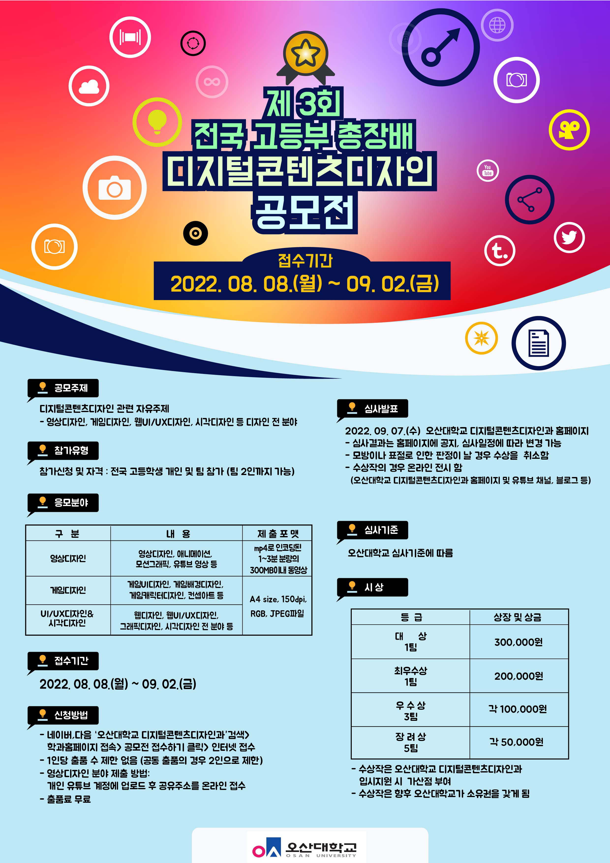 전국 고등부 디지털콘텐츠디자인 공모전 접수용, 입시홍보 및 안내 활용